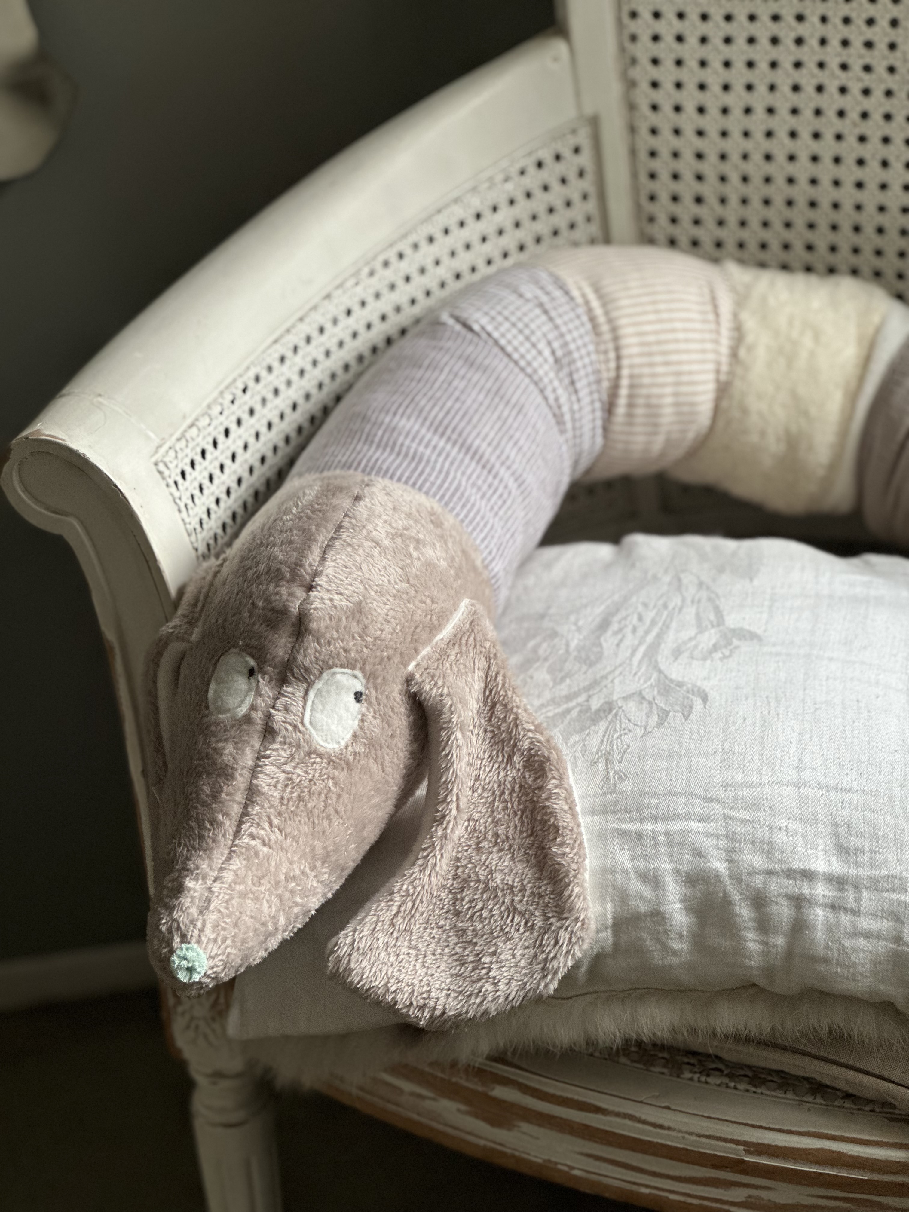 Dieser Bettdackel kann nicht nur als Stoßschutz benutzt werden, sondern auch zum Spielen , kuscheln oder als Zugluftdackel .