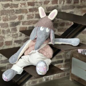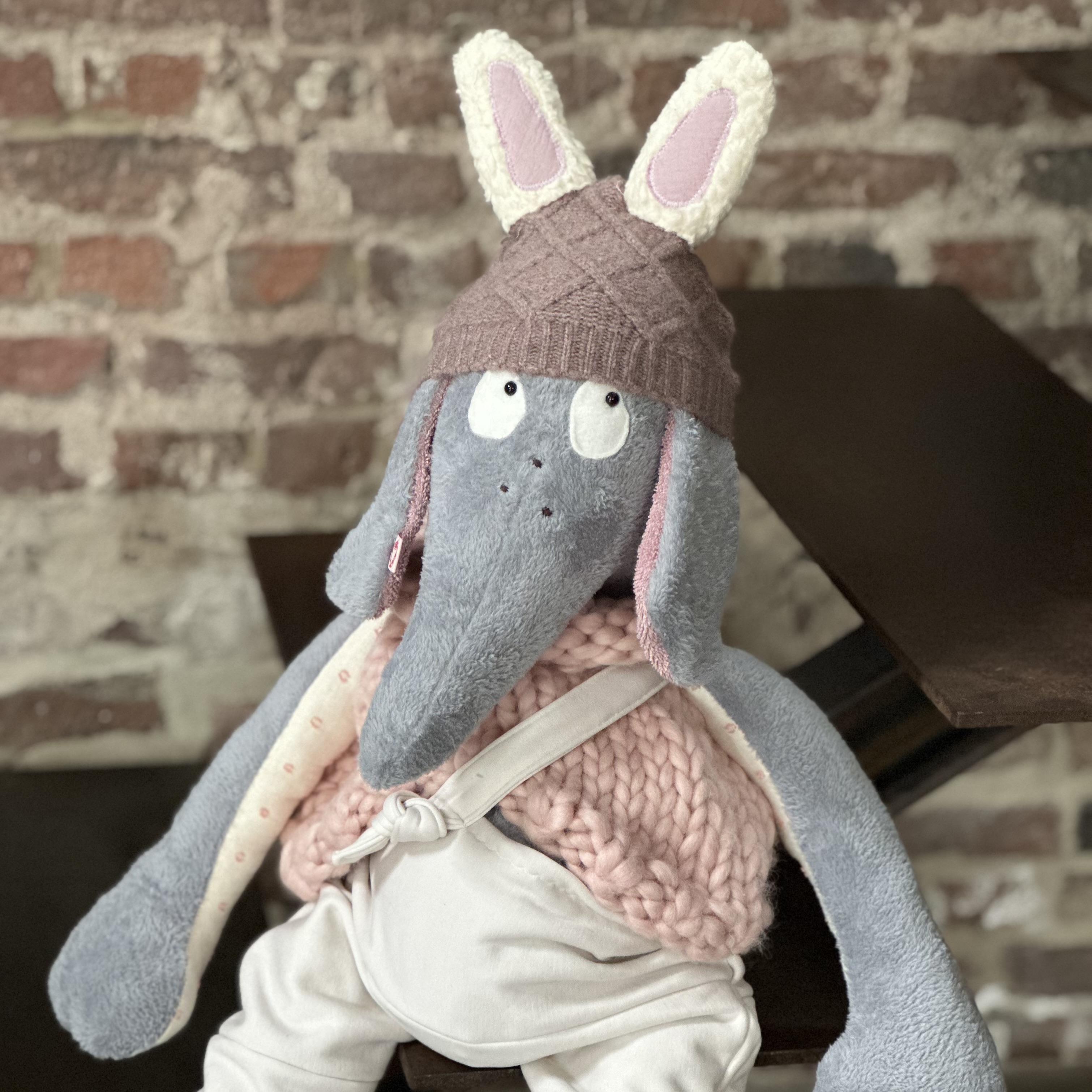 Die Elefanten Dame Lola ist mit ca.80cm ziemlich groß. Sie liebt Ostern und hat deshalb auch am liebsten ihre Hasenmütze an . Lolas Pullover ist handgestrickt und verträgt deshalb nur Handwäsche , ansonsten kann der komplette Elefant bei 30 Grad in die Waschmaschine und auch in den Trockner