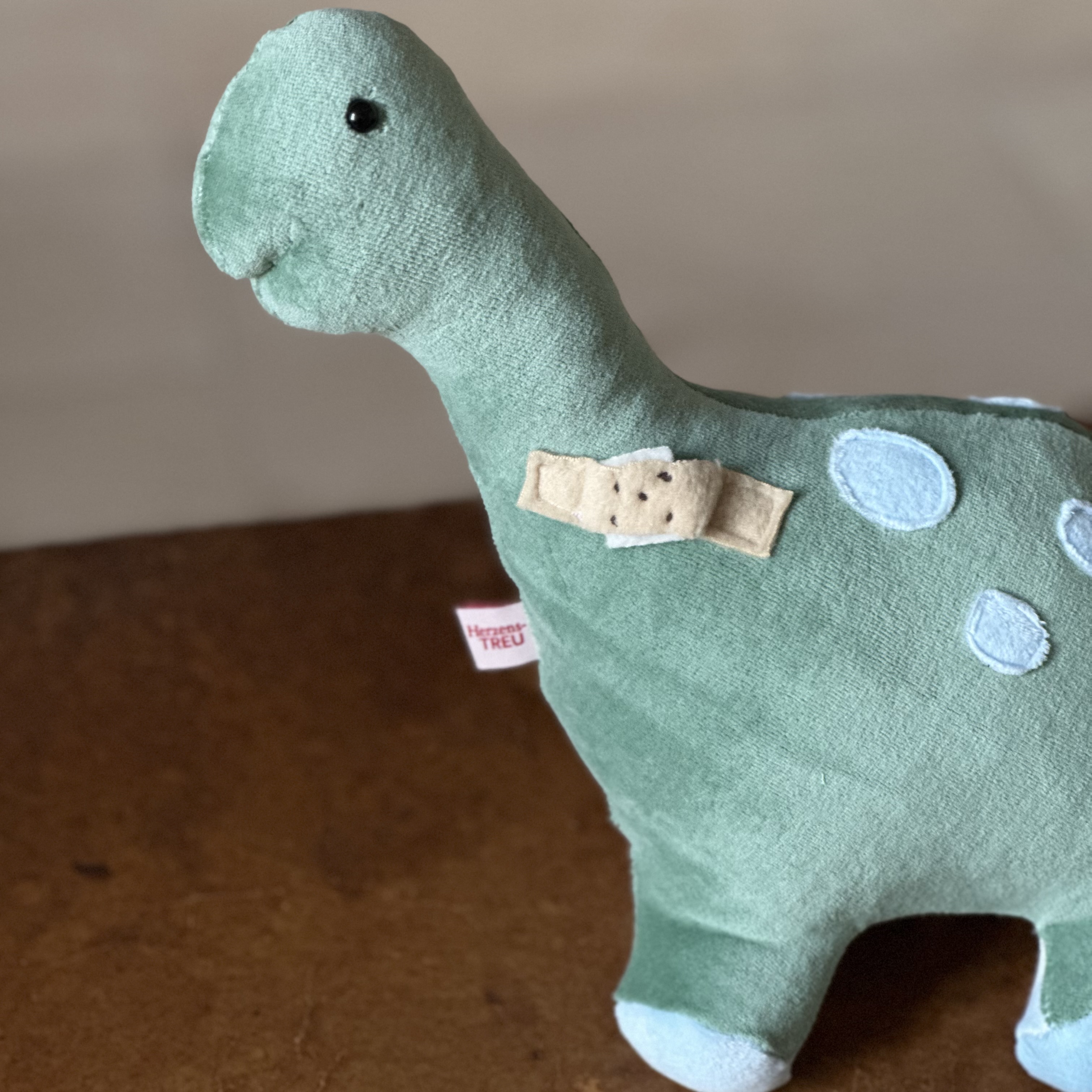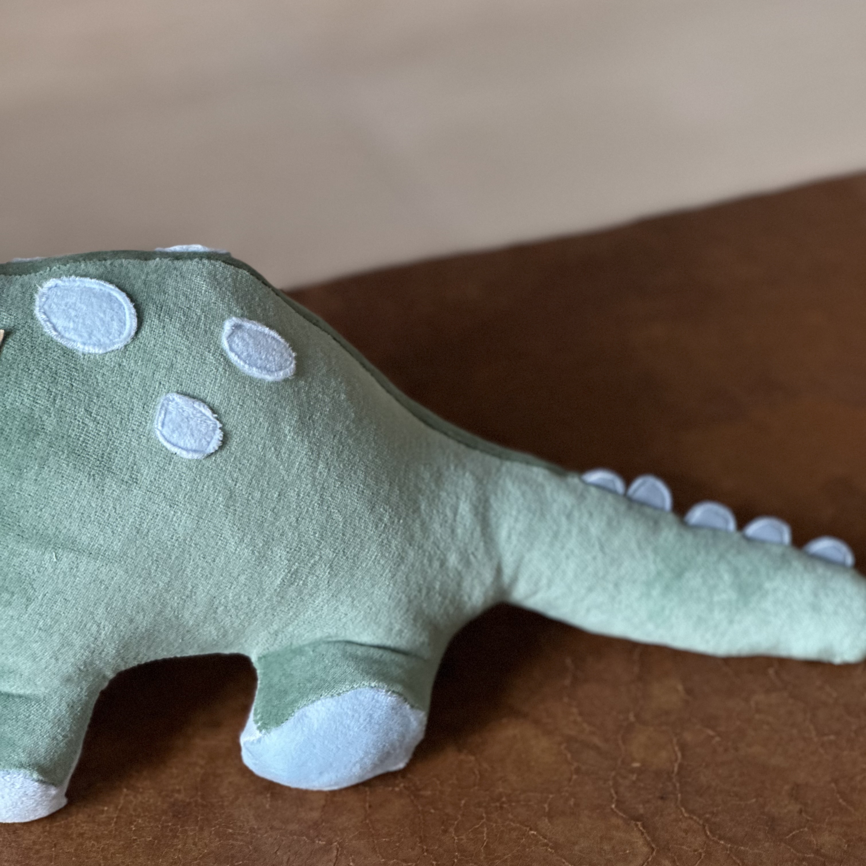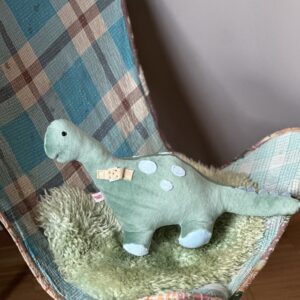 Der kleine Dino ist ganz weich , er ist aus Nicki Stoff und Musselin genäht. Mit einer Größe von ca.45cm , kann er dich überall hin begleiten.
