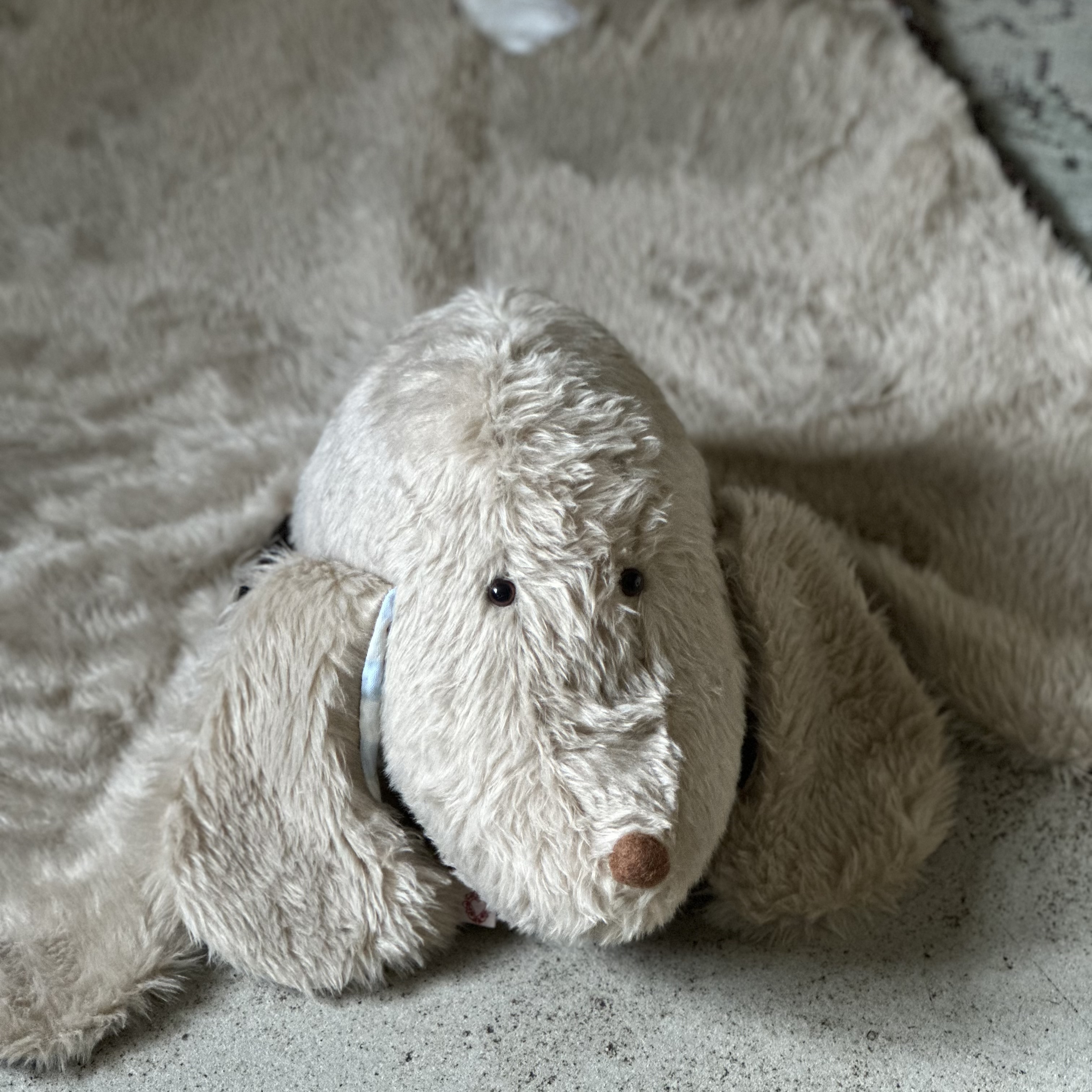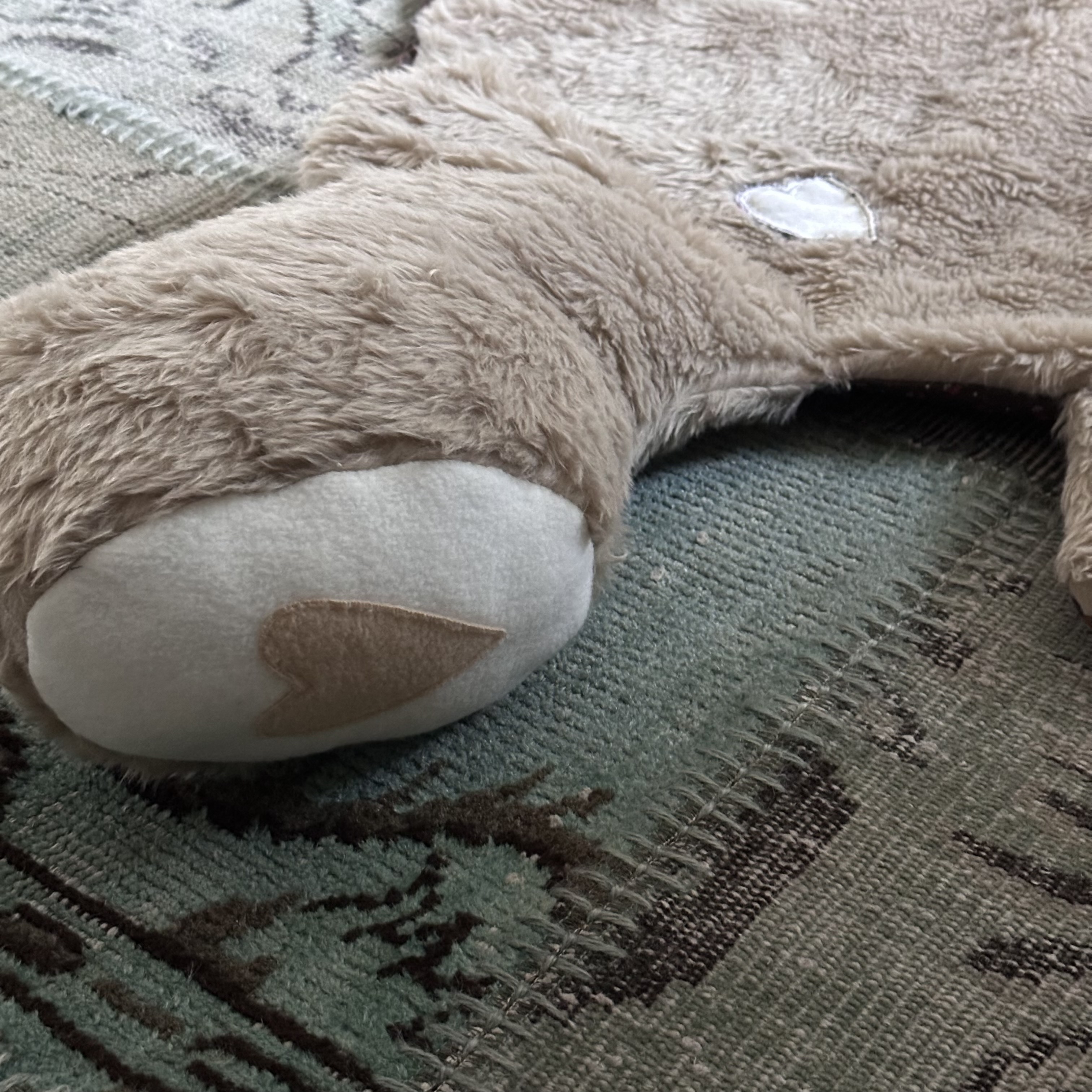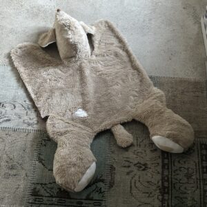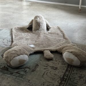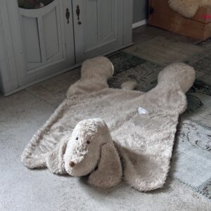 Teppich Toni ist kuschelig weich und ca.115cm lang / 75cm breit . Er verschönert das Zimmer , Du kannst mit ihm spielen , auf im liegen und lesen oder krabbeln . Er ist waschbar bei 30 Grad und Trockner geeignet